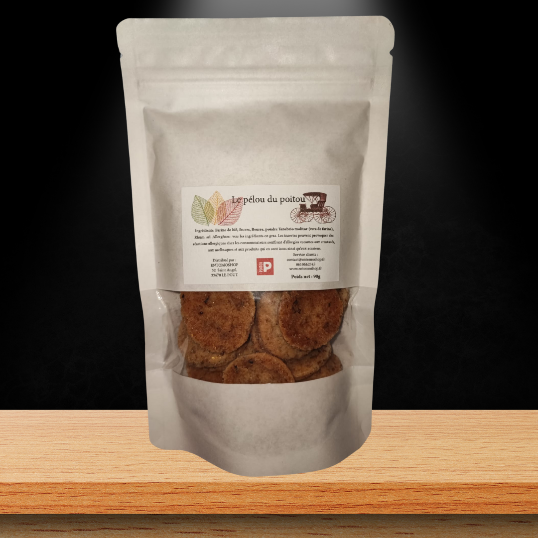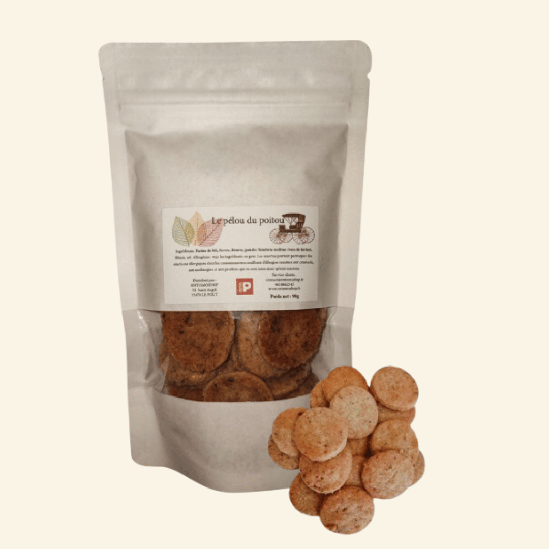 Ces biscuits traditionnels du Poitou reçoivent une touche d’originalité avec l’ajout de farine de Tenebrio Molitor, communément appelé ver de farine. C’est un insecte riche en protéines et aux saveurs subtiles de noisette. Une alliance surprenante qui ravira les papilles des plus curieux. Ils sont croquants à souhait une merveille avec le café ou le thé !