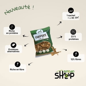 Faites le choix du goût et de la diversité avec les Chirpsies, les chips qui changent les codes de l’apéritif traditionnel, tout en contribuant à une alimentation plus durable et en explorant de nouvelles sources de protéines alternatives.