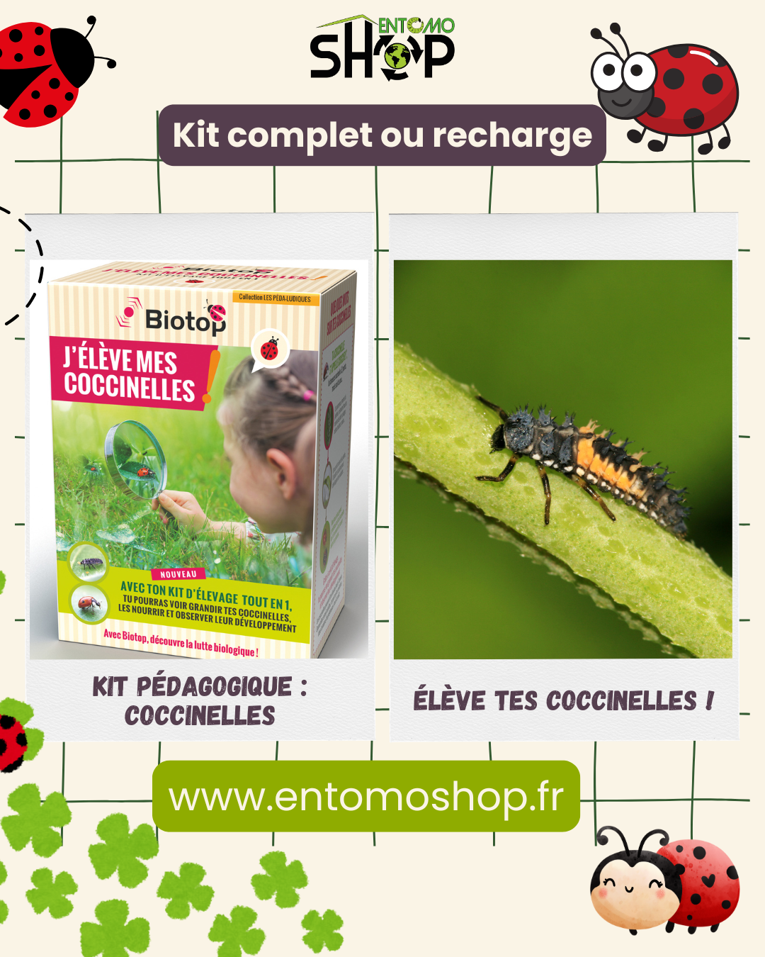 ➡️Recharge pour kits pédagogiques d’élevage de coccinelles- 1 boite coccifly 50 larves + 1 tube d’alimentation