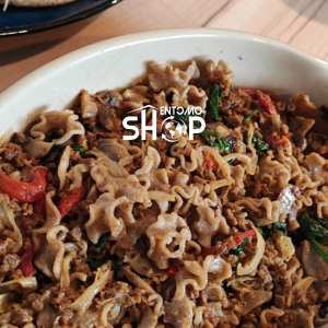 Aujourd’hui, c’est l’occasion de vous faire découvrir et aimer les insectes comestibles pour leurs vertus environnementales et nutritionnelles… et leur goût avec des pâtes à la poudre de Tenebrio Molitor ! Leur petit plus : elles sont sources de protéines, alors plus besoin d’ajouter de la viande pour un repas complet en protéines !
