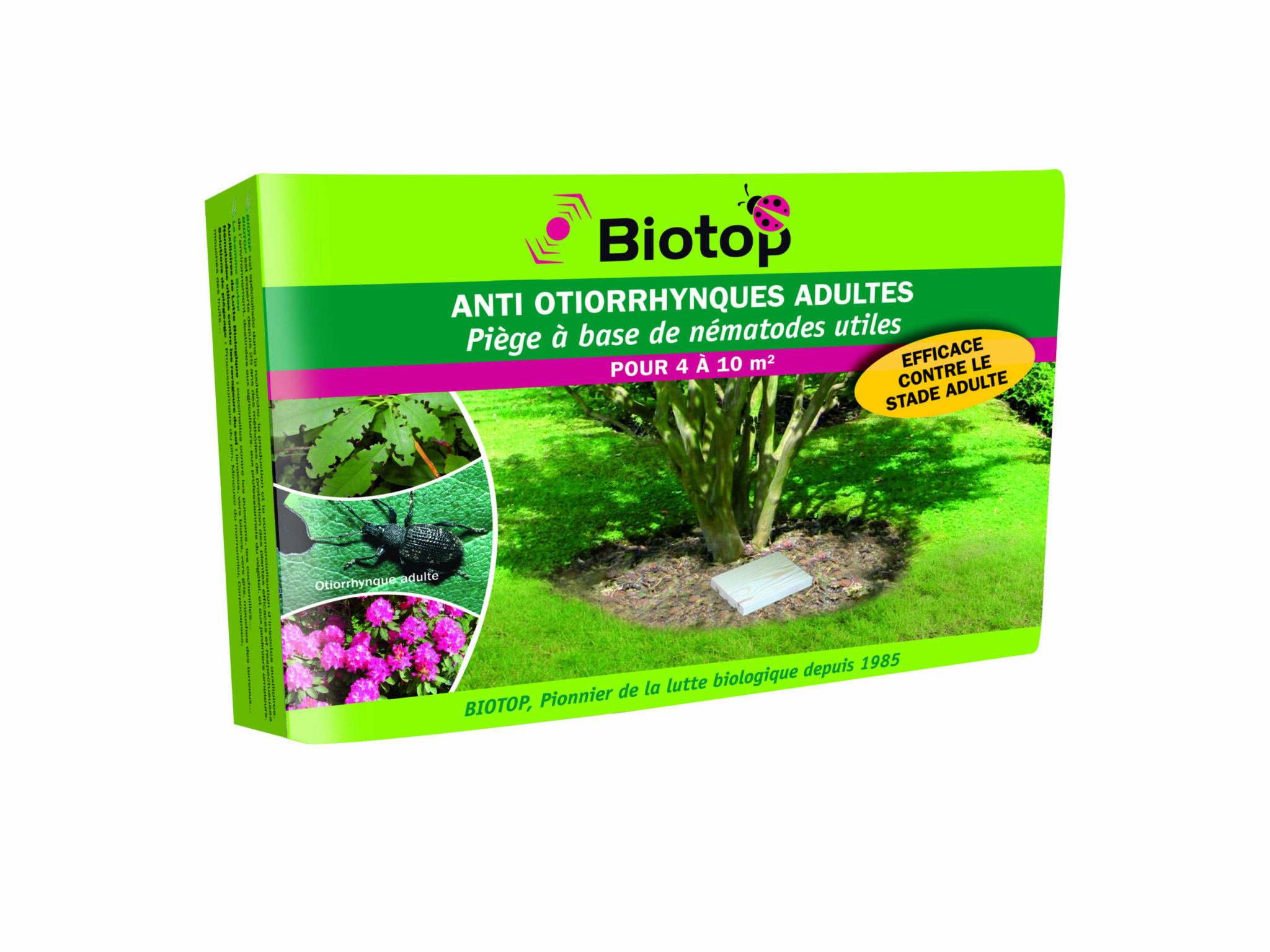 Un piège innovant conçu pour lutter contre les otiorrhynques, ces petits coléoptères qui ravagent vos plantes. Il contient des nématodes, des vers microscopiques bénéfiques qui parasitent spécifiquement les otiorrhynques adultes.
