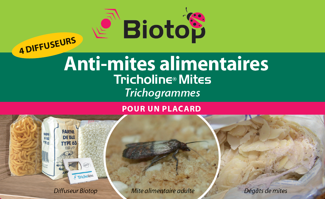 Les trichogrammes ne ciblent que les mites alimentaires et les pyrales des fruits secs. Ils ne s’attaquent pas au Ténébrion meunier (Tenebrio molitor), communément appelé ver de farine.